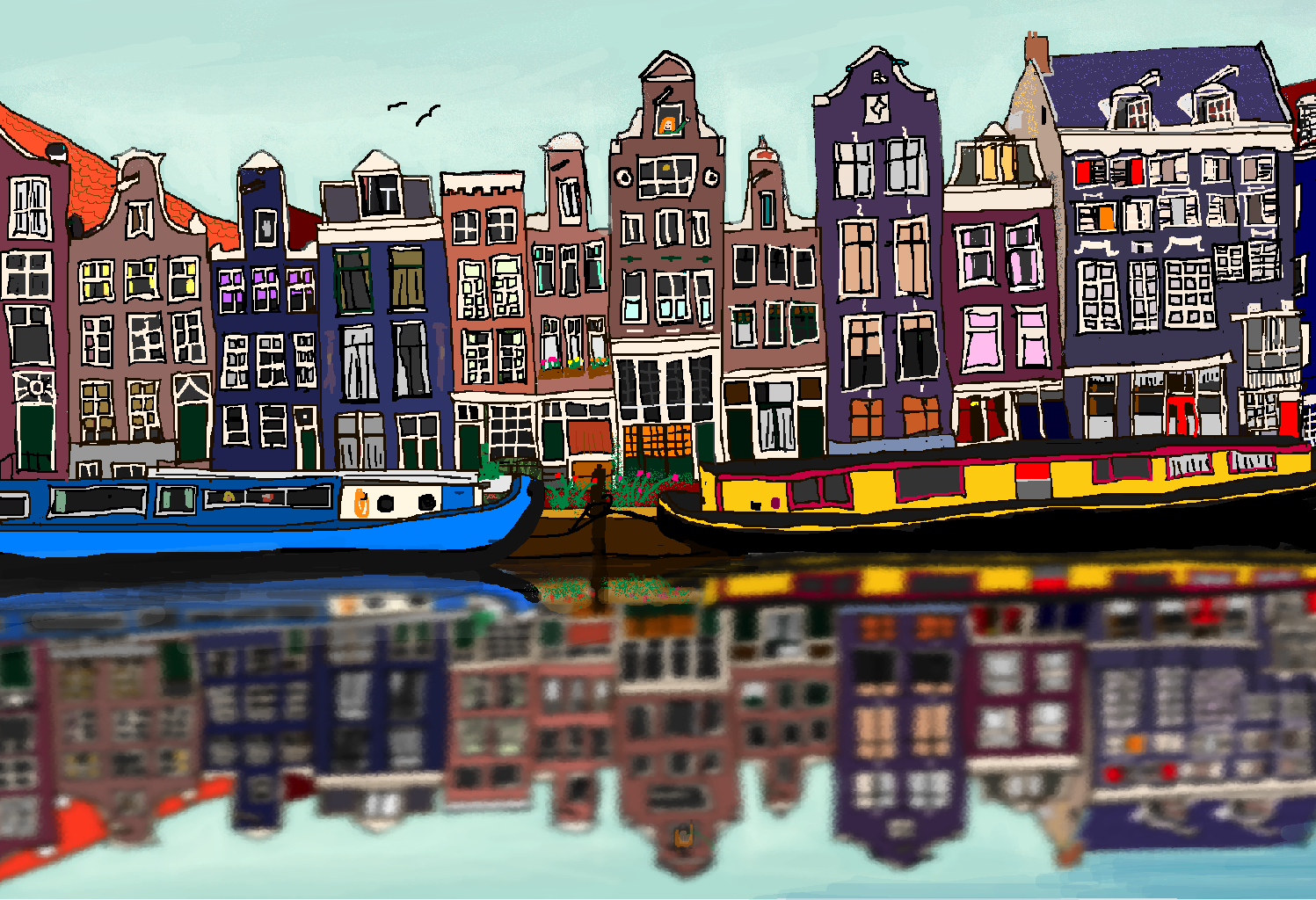 Mooie Amsterdamse grachtenpanden gespiegeld in het water